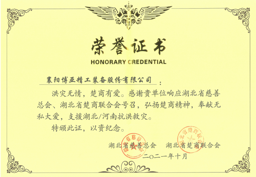 近年來,博亞公司始終積極倡導“企業(yè)發(fā)展不忘回饋社會”理念,大力弘揚光彩精神,積極履行社會責任,主動參與精準扶貧、鄉(xiāng)村振興、光彩事業(yè)和公益慈善事業(yè),累計捐贈資金1000多萬元。2018年被評為全國“萬企幫萬村”先進民營企業(yè)。2020年被全國工商聯(lián)表彰為抗擊新冠肺炎疫情先進民營企業(yè)。2021年4月,公司黨委書記、董事長李文喜被表彰為“全省脫貧攻堅先進個人”,5月,被表彰為湖北省光彩事業(yè)助力鄉(xiāng)村振興、社會公益“光彩之星”,公司被表彰為助力鄉(xiāng)村振興“萬企興萬村”行動標兵。同時,為把博亞人和、擔當精神傳承下去,在2020年修訂公司章程時,寫入了黨建和履行社會責任的具體要求,用實際行動詮釋了博亞公司的家國情懷和責任擔當。