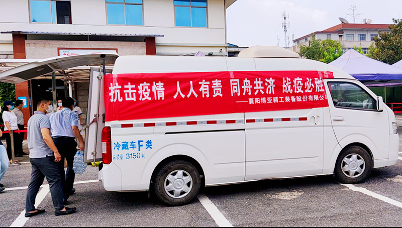 為了感謝他們的辛苦付出,8月7日下午,公司準(zhǔn)備好礦泉水、西瓜、綠豆沙等防暑降溫物資,在市委統(tǒng)戰(zhàn)部副部長、市工商聯(lián)黨組書記白繼平等領(lǐng)導(dǎo)帶領(lǐng)下,先后趕到襄陽西高速出口疫情防控點(diǎn)、市中心醫(yī)院南區(qū)疫苗接種點(diǎn),看望慰問了疫情防控一線的工作人員,給他們送去慰問物資,帶去博亞公司的親切問候,表達(dá)對(duì)他們的崇高敬意,讓他們?cè)谘籽紫娜漳軌蚋惺艿浇z絲清涼。