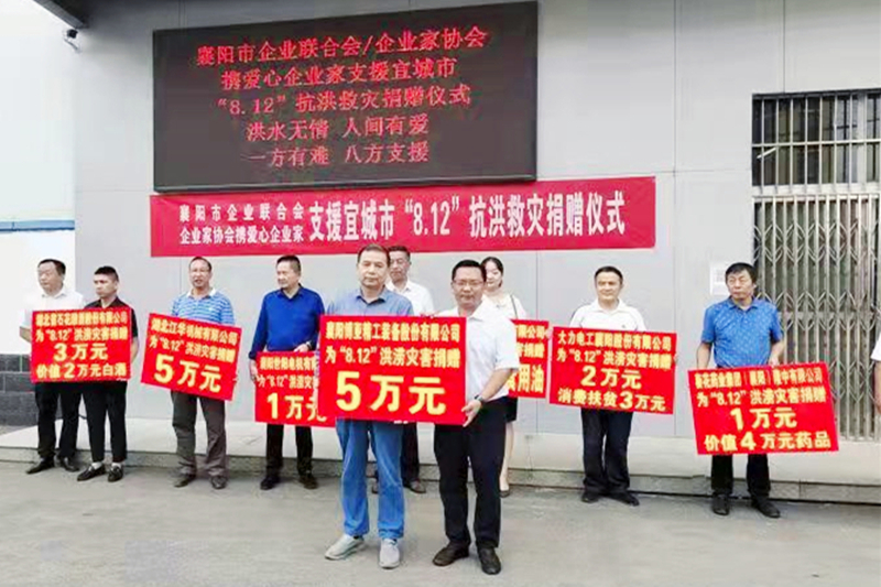 “8.12”宜城市暴雨洪澇災(zāi)害共造成21萬人、53.99萬畝農(nóng)作物受災(zāi)、460個村莊受淹,降雨量是有氣象記錄以來的歷史極值。洪水無情,人間有愛;一方有難,八方支援。為幫助宜城抗洪救災(zāi),盡快恢復(fù)生產(chǎn)生活,9月3日上午,襄陽市企業(yè)聯(lián)合會/企業(yè)家協(xié)會在宜城市愛心公益超市廣場舉行支援宜城市“8.12”抗洪救災(zāi)捐贈儀式,9家愛心企業(yè)現(xiàn)場捐贈現(xiàn)金38萬元以及價值12萬元的物資。博亞公司捐贈現(xiàn)金5萬元,略盡綿力支援宜城市防汛救災(zāi),幫助受災(zāi)群眾渡過難關(guān),用實際行動展現(xiàn)博亞企業(yè)責(zé)任和擔(dān)當(dāng)。